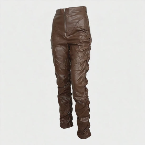 Step into your main-character era with this sleek faux leather Pants. The cropped zip-front top adds an edgy touch, while the ruched leather pants hug every curve in all the right places. Designed for nights out, boss moves, and turning heads effortlessly.