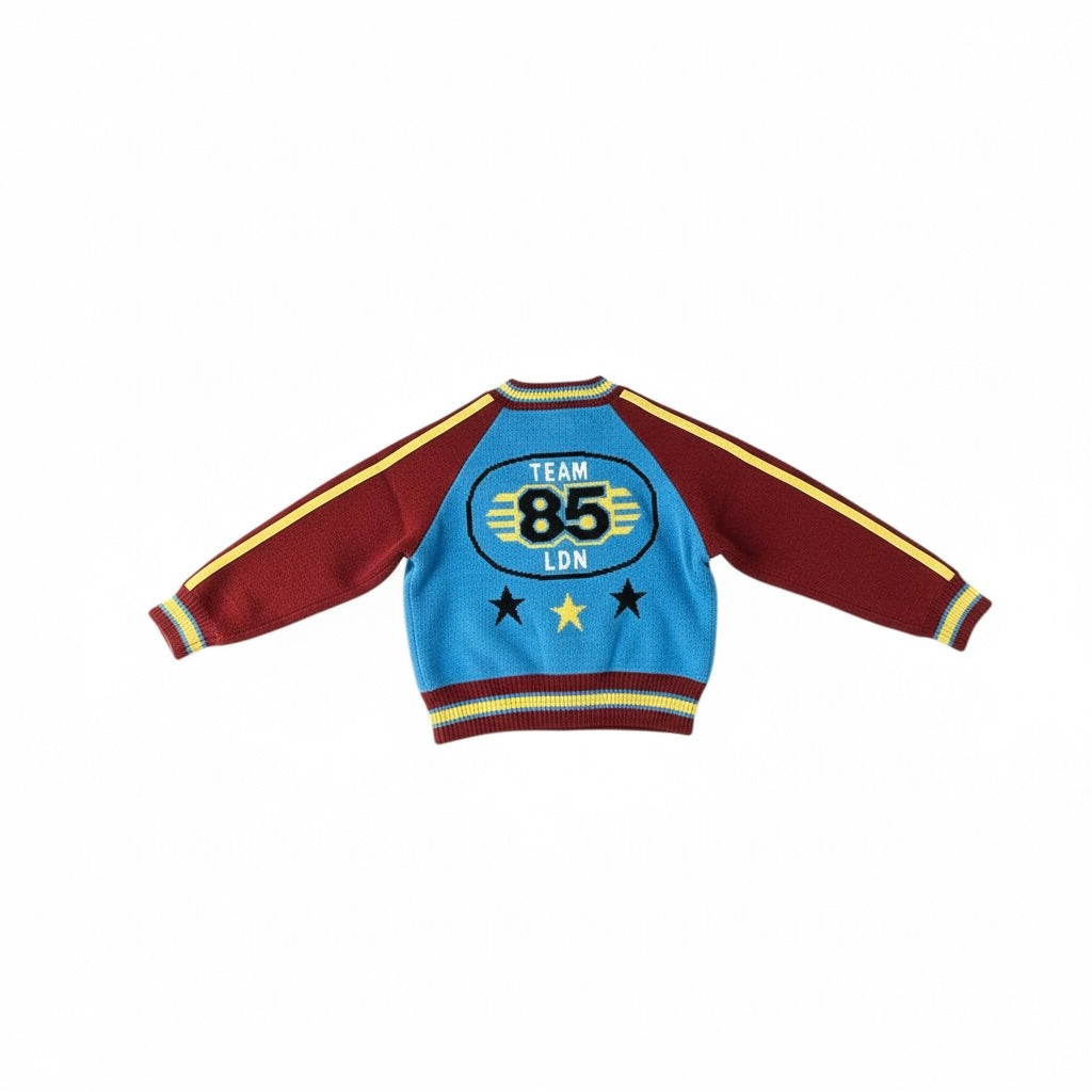 Cozy varsity-style knit sweater with bold “Team 85” detailing on the back. Warm, soft, and stylish enough for casual days or layering over denim and leggings.