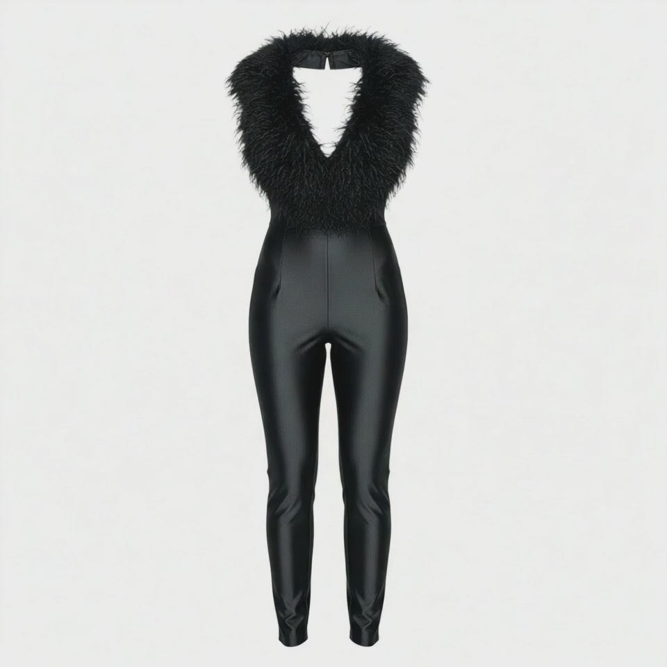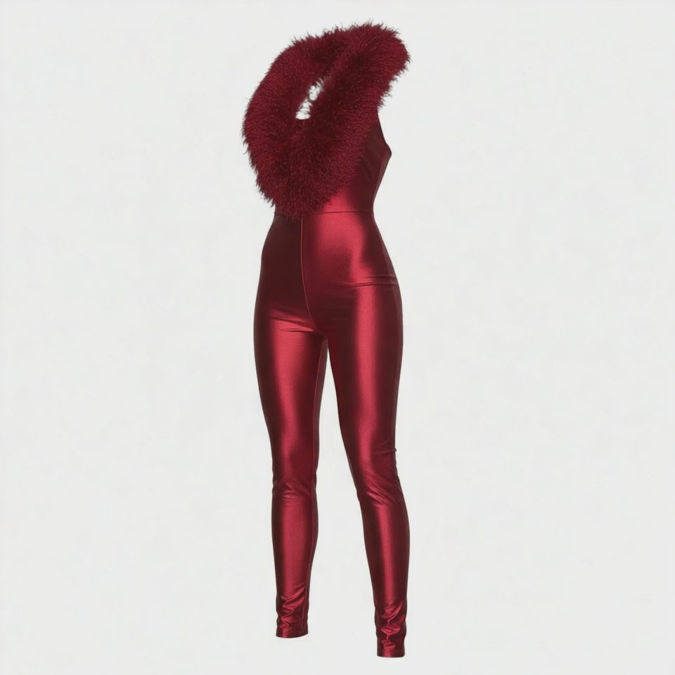 Turn every room into a runway with our Velvet Flame Jumpsuit. Designed in a rich burgundy sheen, this curve-hugging one-piece features a dramatic faux-fur collar that instantly elevates your look. The stretchy, sculpting fabric smooths and snatches, while the sleek silhouette keeps it classy and sexy. Perfect for nights out, holiday parties, birthdays, or any moment you want all eyes on you.